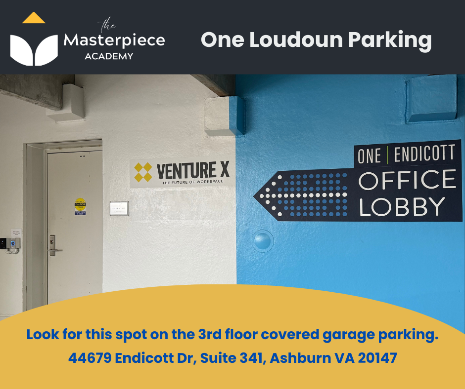 44679 Endicott Dr Ste 341, Ashburn, VA 20147. See the parking info below.